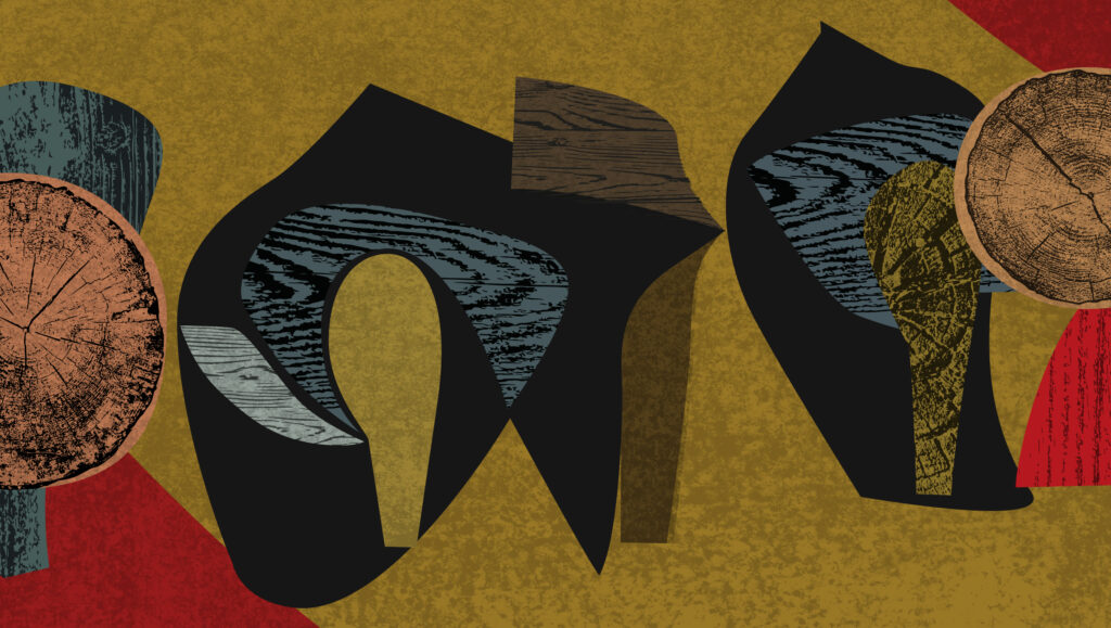 We were tasked with creating illustrations expressing concepts of devotion and different types of oak wood. In the end a more literal approach was adopted, but we felt these designs drawing inspiration from mid-century abstract printmaking were worth remembering.